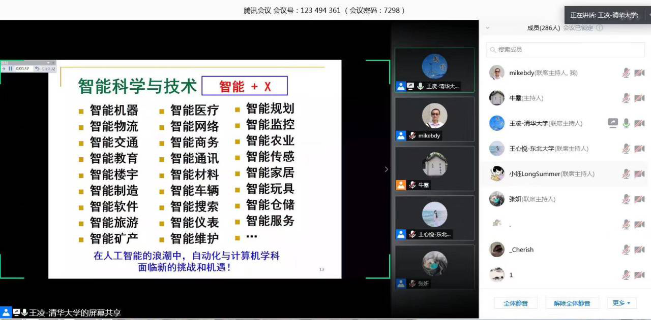 在报告中,王凌教授为我们简明扼要地介绍了智能优化算法是什么,并以各种典型的优化算法为例,从当前科学技术发展的各个层面出发,给我们生动地讲解了智能优化算法会应用在哪里,以及如何才能有效应用。最后,王凌教授从各种复杂工程的开展实施、学术科研的前进发展等角度,给我们详细解释了要好好发展智能优化算法的原因。此外,王凌教授还总结性地指出“任何控制与决策问题的本质都是优化问题”,并结合之前介绍的方方面面来说明优化算法应用层面之广泛、发展之重要。在讲解智能优化算法的关键流程时,王凌教授还提到,算法中的策略设计是智能算法中“智能”的重点体现,这一观点的提出也给研究者们提供了一些新的启发和灵感。在报告会后,同学们和研究者们踊跃提问,线上互动氛围热烈,王凌教授还就有关问题热情且耐心地与在线聆听报告的研究人员做了互动交流和答疑,一场完美的学术盛宴也就此告一段落。