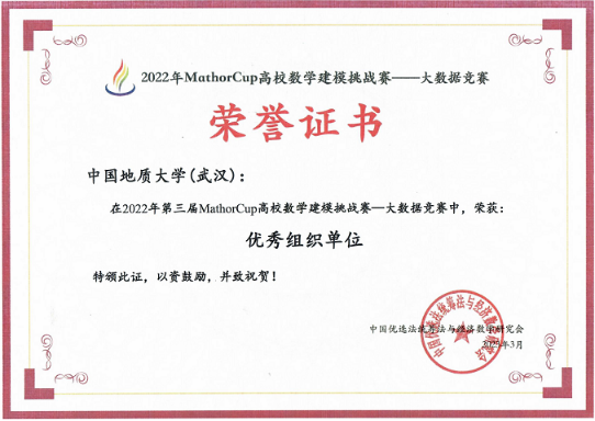 2023年3月13日, 2022年第三届MathorCup高校数学建模挑战赛——大数据竞赛落下帷幕。3044am永利集团官网(武汉)3044am永利集团官网组织队伍参加本次比赛,并取得了一等奖5项、二等奖3项以及三等奖8项的优异成绩,同时我校也被授予优秀组织单位奖。